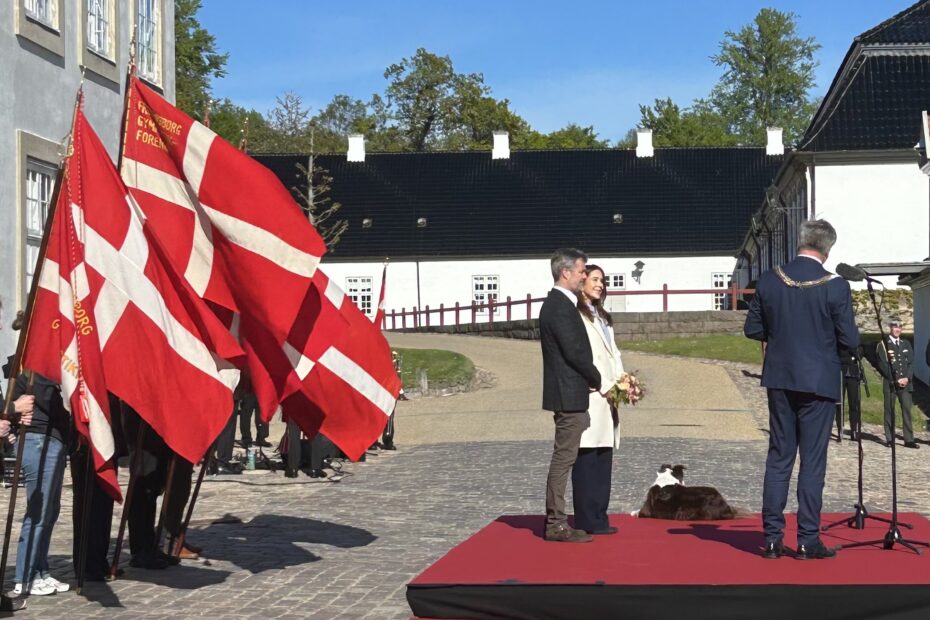I det smukkeste solskin blev Deres Majestæter Kongen og Dronningen festligt modtaget med flag, musik og glade mennesker!